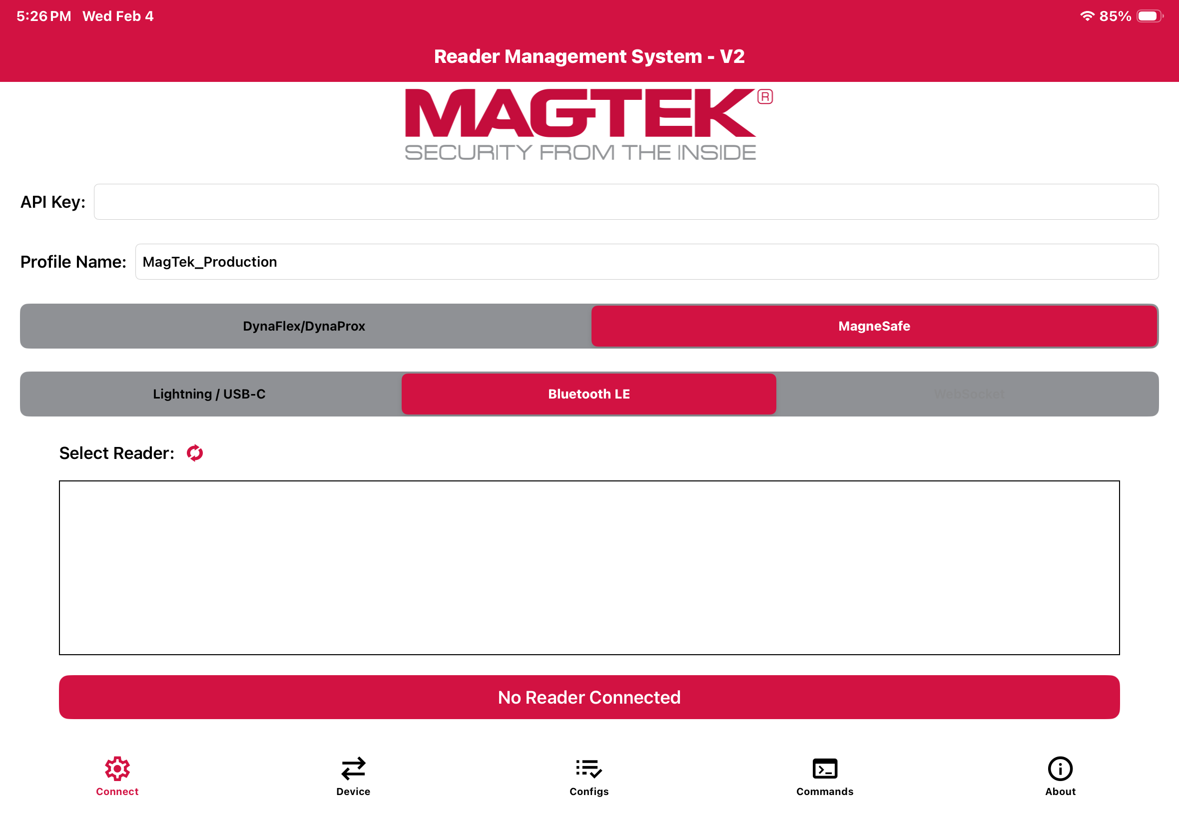 - Download the Magtek Reader Management System v2 app