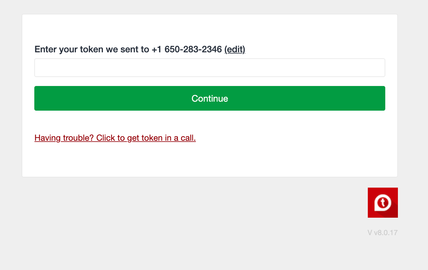 An SMS (text) is sent with your PIN needed to login, enter the PIN and hit continue.